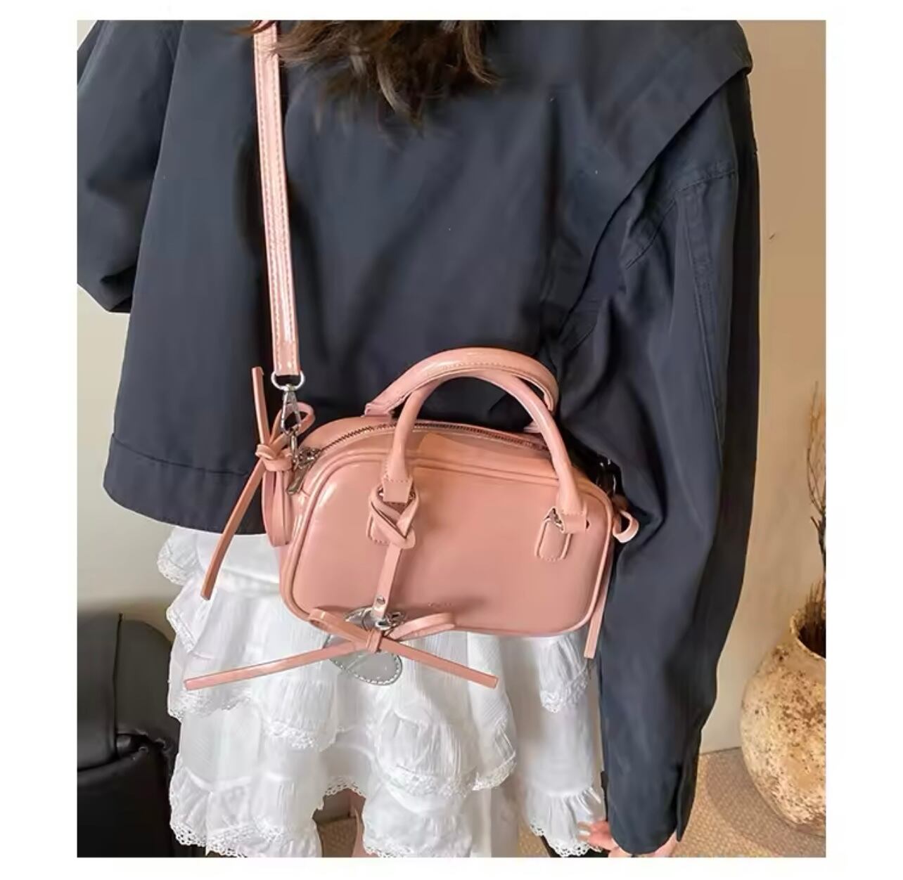 この韓国バッグは、甘さとおしゃれが絶妙に融合したスタイリッシュなアイテムです。