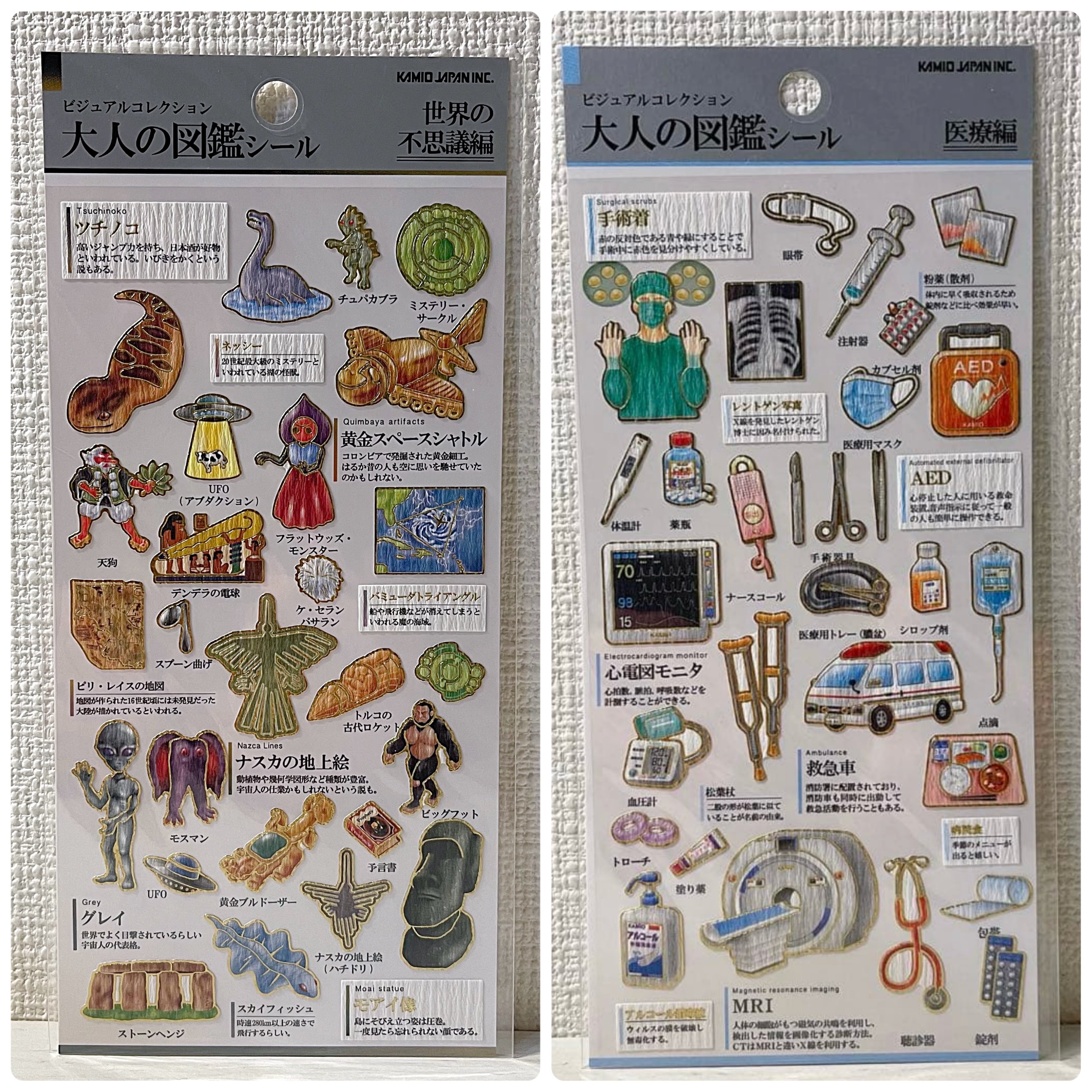 不思議編、医療編の2つのパッケージで、それぞれ独特の魅力が詰まったシールをお届けします。